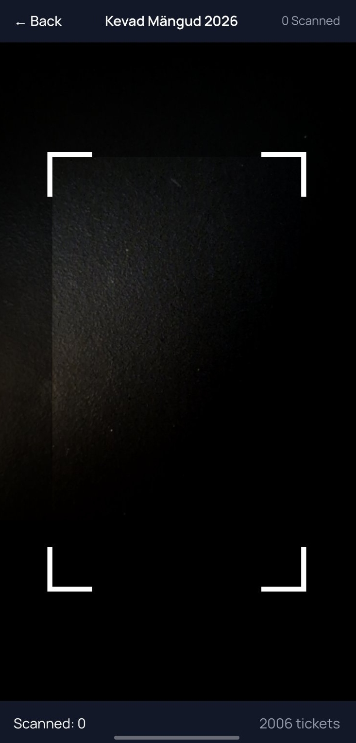 Loo sündmus, genereeri QR-koodid, skaneeri valideerimiseks. Reaalajas töölauad, skannimiste jälgimine ja detailsed aruanded.